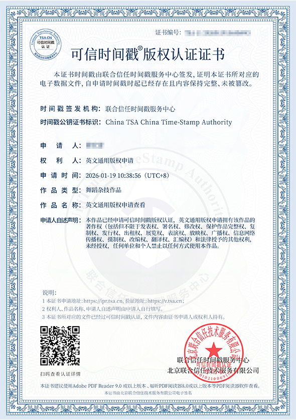 可信时间戳(R)是由联合信任时间戳服务中心签发的一个电子证书,用于证明软件作品是由谁(WHO)在什么时间(WHEN)拥有一个什么样的代码(WHAT),是一个具有法律效力的电子凭证,已经得到司法广泛认可。
